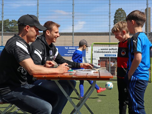 Außerhalb der Trainingseinheiten war am ersten Tag der große Höhepunkt der Besuch der beiden Fußball-Profis von der SV Elversberg, Laurin von Piechowski und Sinan Tekerci.