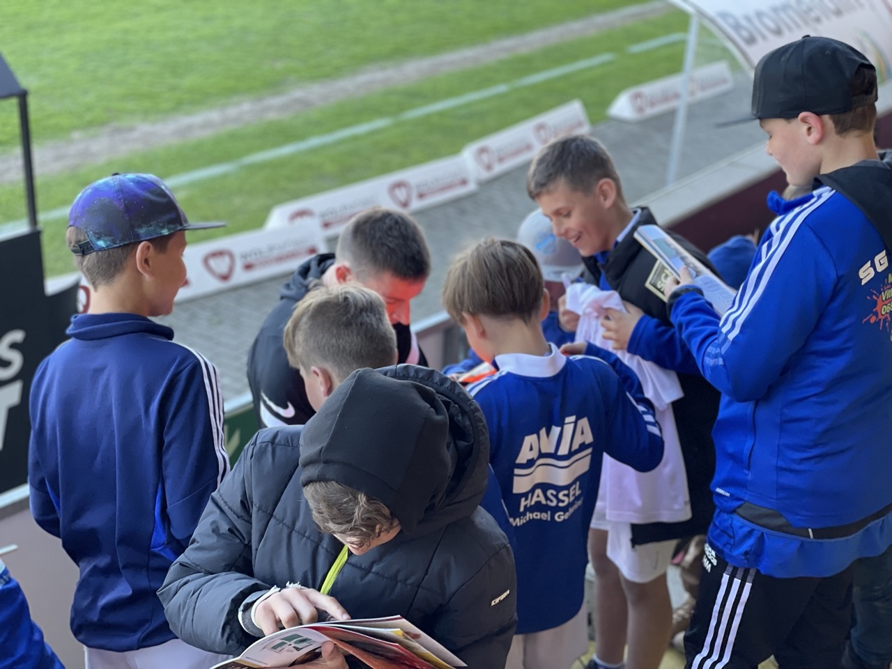 Am Samstag vor dem Camp hatten sich alle Kinder und Eltern beim Regionalliga-Spitzenspiel der SVE gegen Steinbach kennen gelernt. Die Camp-Kinder hatten freien Eintritt und feierten die Profis der SVE aus dem Fanblock an. Mit Erfolg: die SVE gewann das Spiel mit 3:0 und hat bekanntlich zwischenzeitlich den Aufstieg in die Dritte Liga geschafft. Im Anschluss an das Spiel bekamen die Kinder eine exklusive Autogrammstunde mit allen Profis der SVE.
